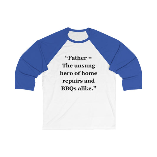 "Father = The unsung hero of home repairs and BBQs alike" - Unisex 3\4 Sleeve Baseball Tee