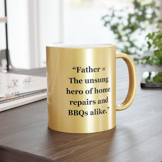 "Father = The unsung hero of home repairs and BBQs alike" - Metallic Mug (Silver\Gold)