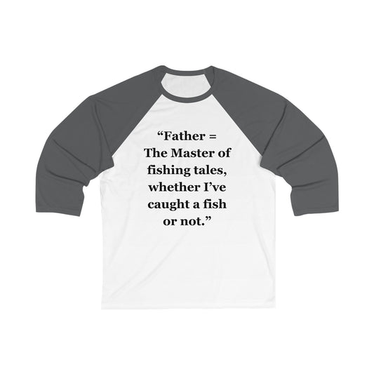 "Father = The Master of fishing tales, whether I’ve caught a fish or not" - Unisex 3\4 Sleeve Baseball Tee