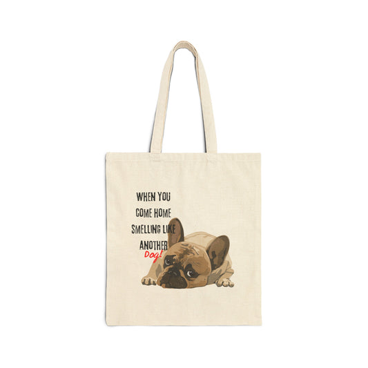 "When you come home smelling like another dog" Hilarious Dog Meme - Cotton Canvas Tote Bag