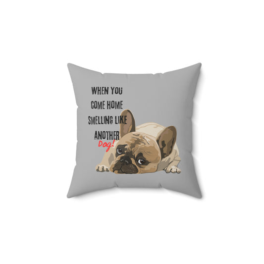 "When you come home smelling like another dog" Hilarious Dog Meme - Spun Polyester Square Pillow