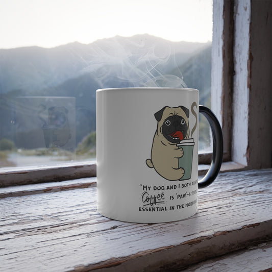 "My Dog and I Both Agree; Coffee is Paw-sitively Essential in the Morning!" - Color Morphing Mug, 11oz