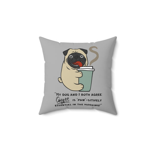 "My Dog and I Both Agree; Coffee is Paw-sitively Essential in the Morning!" - Spun Polyester Square Pillow