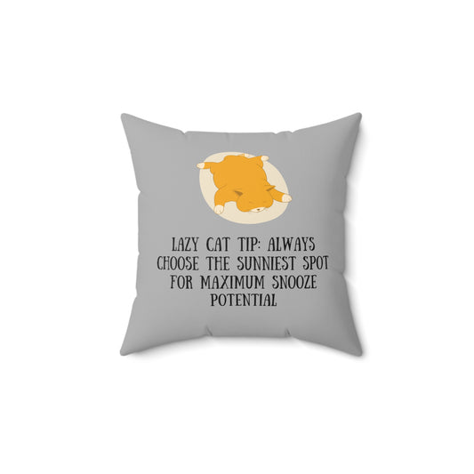 "Lazy cat tip Always choose the sunniest spot for maximum snooze potential" - Spun Polyester Square Pillow