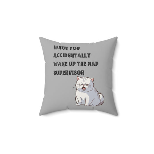 "When you accidentally wake up the nap supervisor" Cat Meme - Spun Polyester Square Pillow