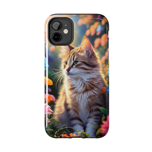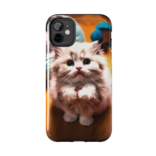 Rainy Day Whiskers: Cartoon Cat with Red Umbrella - Tough Phone Cases