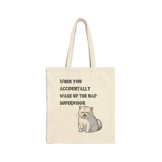 "When you accidentally wake up the nap supervisor" Cat Meme - Cotton Canvas Tote Bag