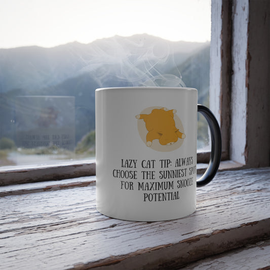 "Lazy cat tip Always choose the sunniest spot for maximum snooze potential" - Color Morphing Mug, 11oz