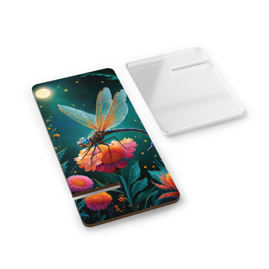 Moonlit Serenity: Dragonfly on a Flower - Display Stand for Smartphones