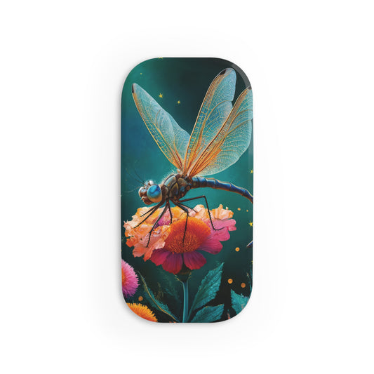 Moonlit Serenity: Dragonfly on a Flower - Phone Click-On Grip