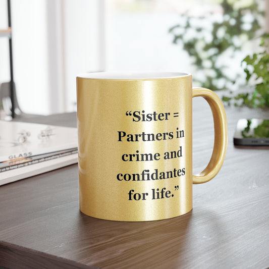"Sister = Partners in crime and confidantes for life" - Metallic Mug (Silver\Gold)